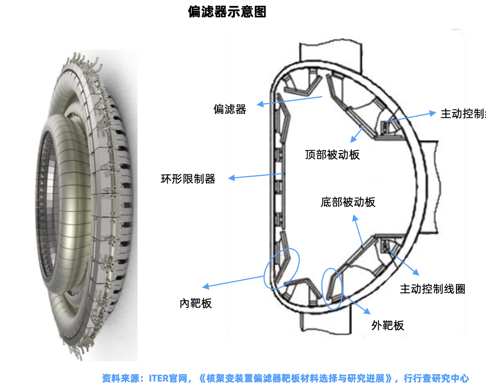 偏滤器:有效屏蔽来自器壁的杂质。相关厂商包括国光电气、安泰科技应流股份等。例如,国光电气研制的偏滤器是ITER项目、我国CFETR及HL - 2M等聚变项目的关键部件。