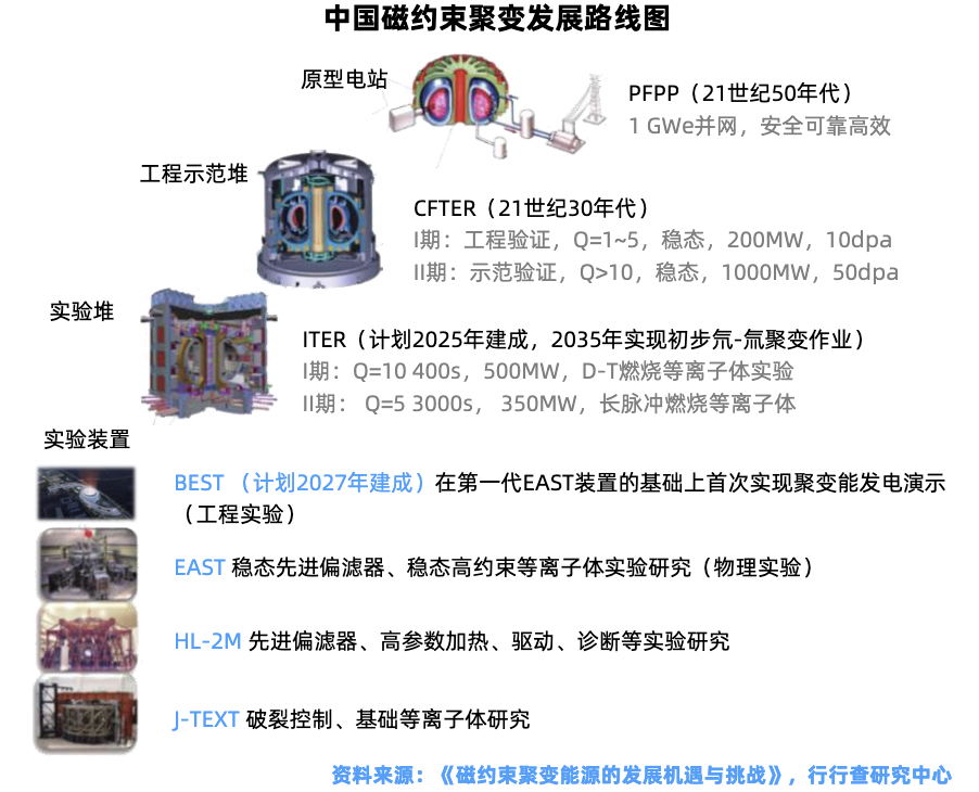 在我国聚变能发展路线图中,中国聚变工程试验堆(CFETR)是聚变实用化研究的关键一步。中国星环聚能计划于 2027年底或2028年初开始商业示范堆的建设,目标是在2030年左右展示一个可输出电能的聚变反应堆。