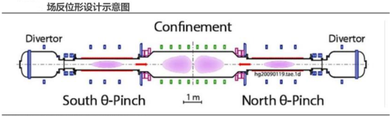 场反位形直线形(FRC)装置是更经济的技术路线。场反位形是没有环形场线圈的较简单的磁约束系统,内部等离子体产生的反向电流会形成与外部磁场反向的磁场,使得等离子体在形成阶段成为一个自封闭的磁场结构。场反位形技术路线具有高β值特征,意味着能够在较低的磁场强度下约束较高密度的等离子体,从而具备更高的能量效率,适合实现紧凑、低成本的核聚变装置。同时可采用磁压缩、磁重联等高效加热手段,结合磁流体发电机实现能量转化,经济性较高。在工程建设方面,场反位形具有全对称的线圈和真空室等,结构简单,模块化结构替换容易,降低了工程难度,且造价低。