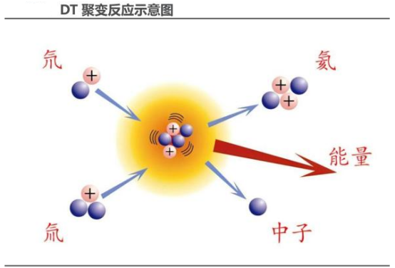 (1)DT(氘-氚聚变):氘-氚反应是当前可控核聚变研究中最有希望实现的反应,因为它在相对较低的温度下就能发生,且释放的能量相对于其他反应来说非常高。但这种反应产生的中子具有很高的能量,处理这些中子的辐射和材料问题是目前研究的难点之一;
