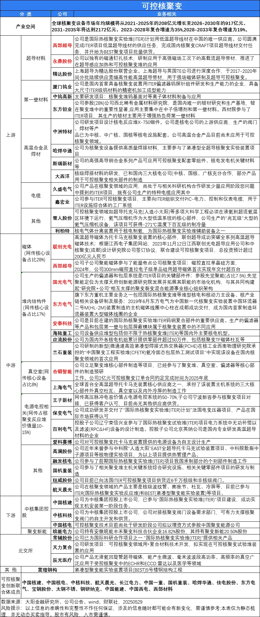 可控核聚变的投资策略,可采取 “材料突破→技术验证→商业应用” 的分阶段策略,优先关注高温超导和耐辐照材料企业。