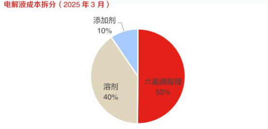六氟磷酸锂(LiPF6)是目前最常用的溶质,也是电解液成本重心。尽管在电解液中六氟磷酸锂作为溶质的质量占比只有12%左右,但成本占比却很高,约为50%。因此,六氟磷酸锂价格的波动会直接影响电解液的生产成本,进而影响电解液的售价。