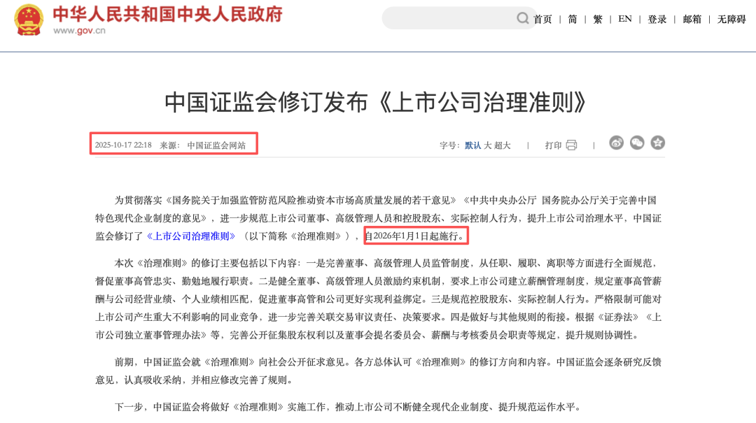 证监会公布《上市公司治理准则》,自2026年1月1日起施行,要求上市公司有利润必须一年多次分红,有利润不分红,要有充分披露原因。