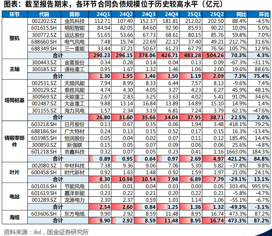 值得注意的是,此前跟踪调研风电行业发现,风电订单蓄水池创历史天量。全行业在手订单突破300GW,足够覆盖未来两年装机需求。最震撼的是整机厂合同负债规模——25Q2同比激增70%,金风科技单家就达到202亿元。