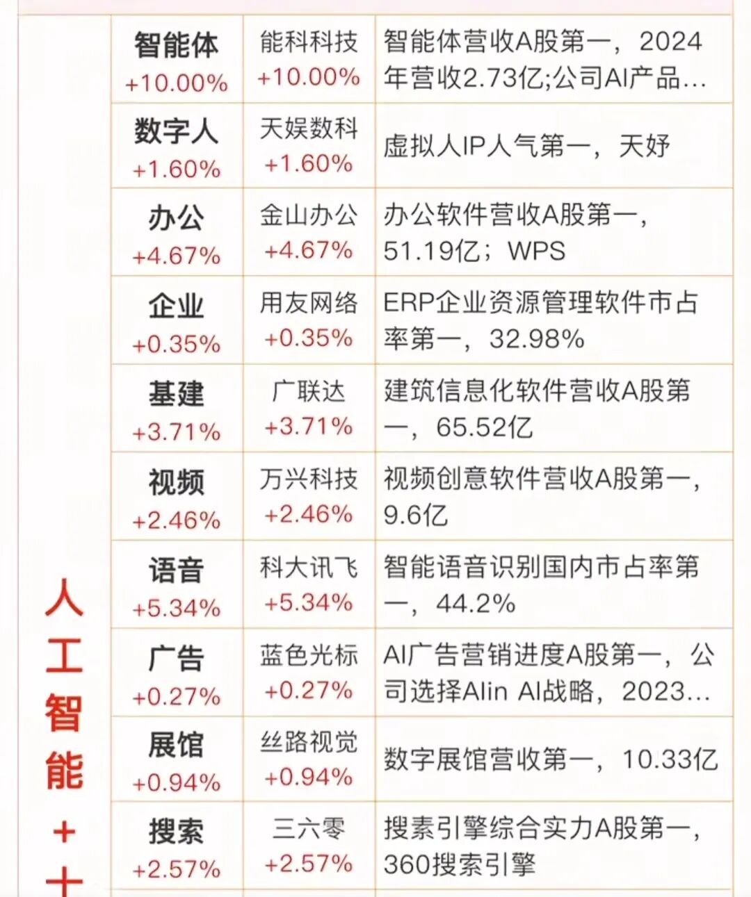 “人工智能+”行业龙头代表:润达医疗领跑医疗大模型,华勤技术手机ODM全球第一;能科科技智能体营收居首,金山办公WPS办公软件营收A股第一…~