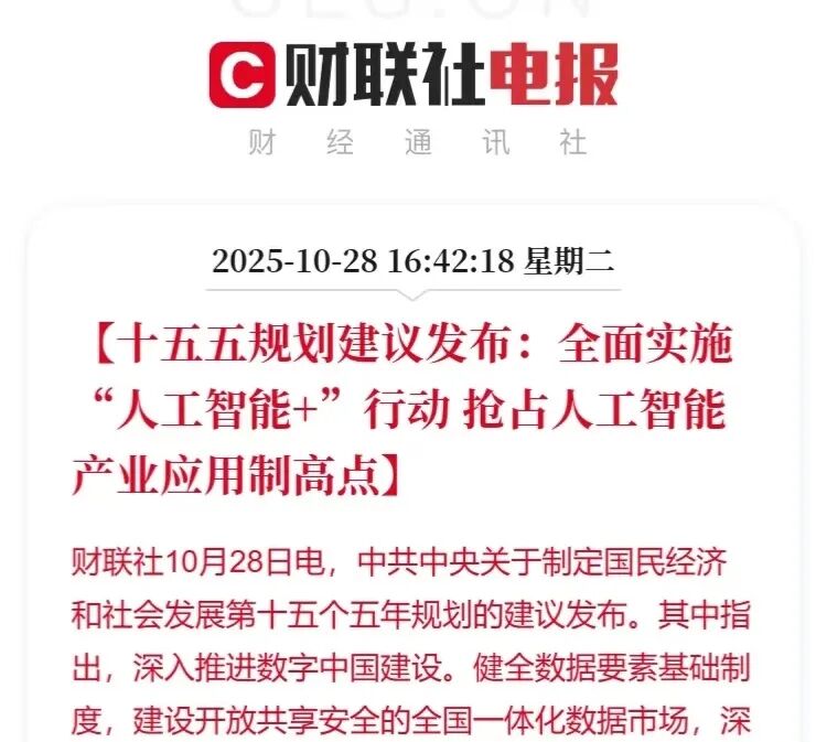 2025年10月28日“十五五”规划建议重磅落子,全面实施“人工智能+”行动,剑指人工智能产业应用制高点!人工智能+行业龙头代表有哪些?