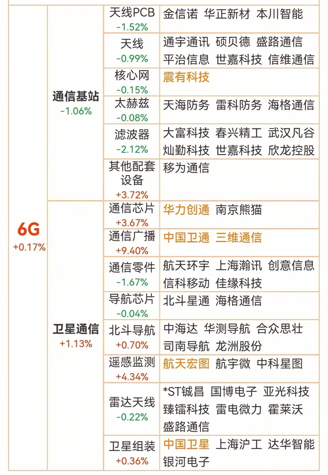 第六代移动通信(6G)概念龙头代表:中国卫通、华力创通、三维通信等等。