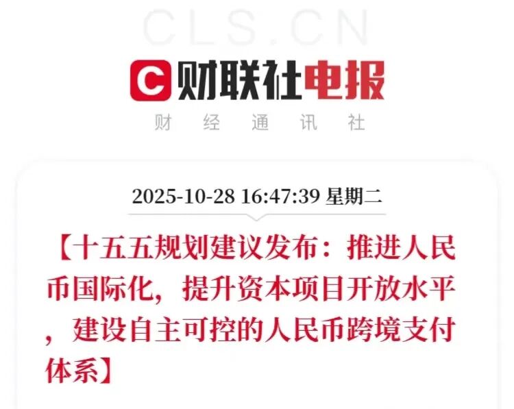 2025年10月28日,“十五五”规划建议发布,明确推进人民币国际化,提升资本项目开放水平,建设自主可控的人民币跨境支付体系,为人民币全球使用与金融开放赋能。相关题材包括跨境支付概念、数字货币概念、稳定币概念等等。