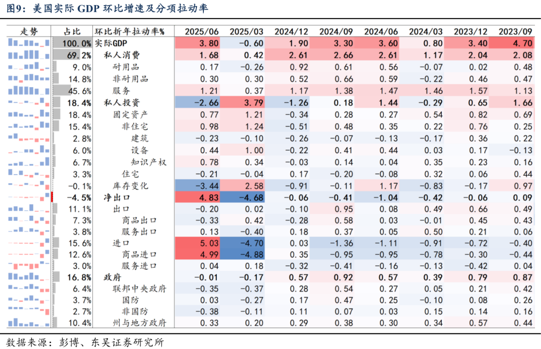 在增长节奏上,我们预计2026年各季度美国GDP将“先抑后扬”,其中26Q1可能在25Q4政府关门造成的低基数上环比显著走高,但26Q1-Q2平均增速预计延续趋势性小幅向下;下半年,财政和货币双宽预计拉动美国GDP环比年率增速回升至[2.5, 3.5]%的扩张区间。