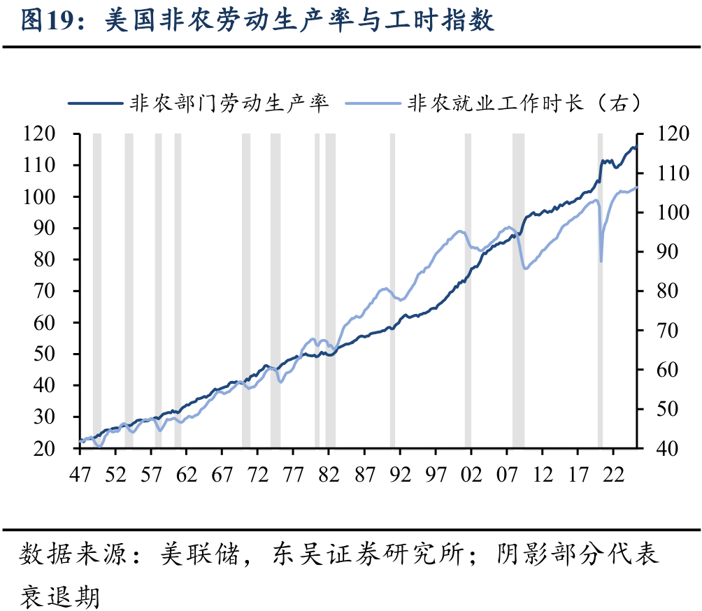 (2)供给端,AI对美国非农就业的影响暂时可控,对美国全要素生产率的影响积极而渐进。