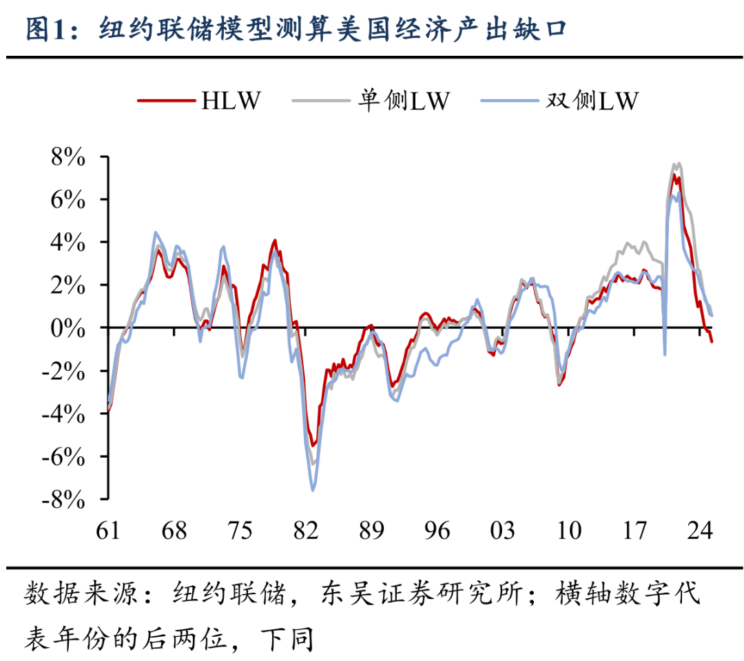 当前美国经济处在哪一周期?纽约联储最新模型测算,美国经济产出缺口从21Q2 7.647%的历史最高水平跌至25Q2的[-0.632, 0.554]%范围区域,经济周期已从2021年的过热、2022年的滞胀转向2023年至今的软着陆阶段。随着产出缺口的闭合,美国经济也已步入软着陆的后半场。