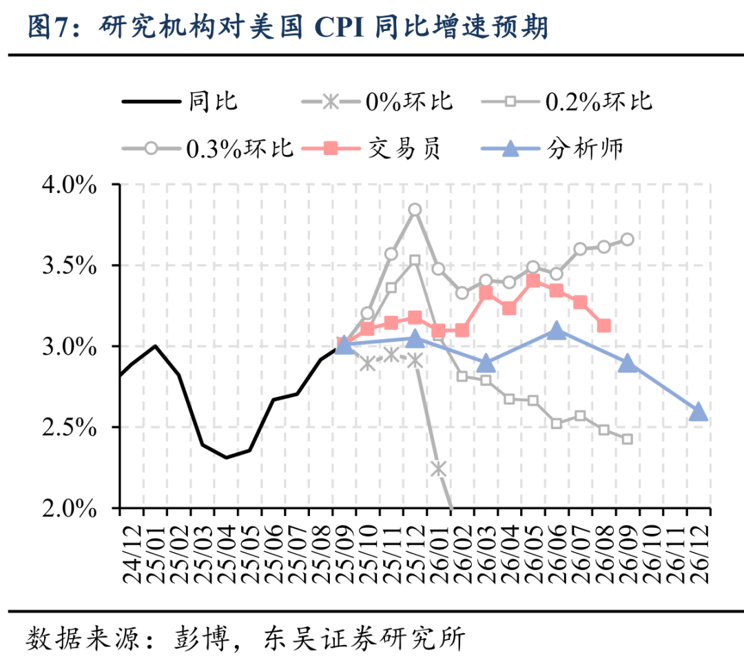 当然,特朗普为备战中期选举所撬动的宽松财政与货币政策的组合并非毫无代价的,宽松的政策组合将意味着26Q4美国通胀将面临更大上行风险。最新分析师预期25Q4-26Q4美国CPI同比增速分别为3.0→2.9→3.1→2.9→2.6%,交易员预测CPI同比增速将在2026年5月提升至3.4%,随后回落至2026年9月的3.13%。当前市场预期的最大风险在于,2026年更宽松的财政与货币政策组合或从需求端给年底的美国通胀带来更大的上行风险,如果能源与商品供给出现巨大波动,则1970s二次通胀的历史可能重演。