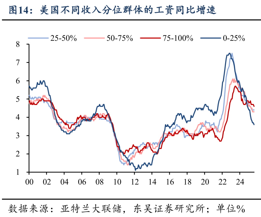 (1)需求端,AI产业浪潮对美股的提振将进一步放大股市对于美国居民的财富效应,替代超额储蓄成为支撑美国消费的重要因素;但同时,这也将激化美国“K型”经济模式的负面影响,因而增量的财政政策有其必要性。