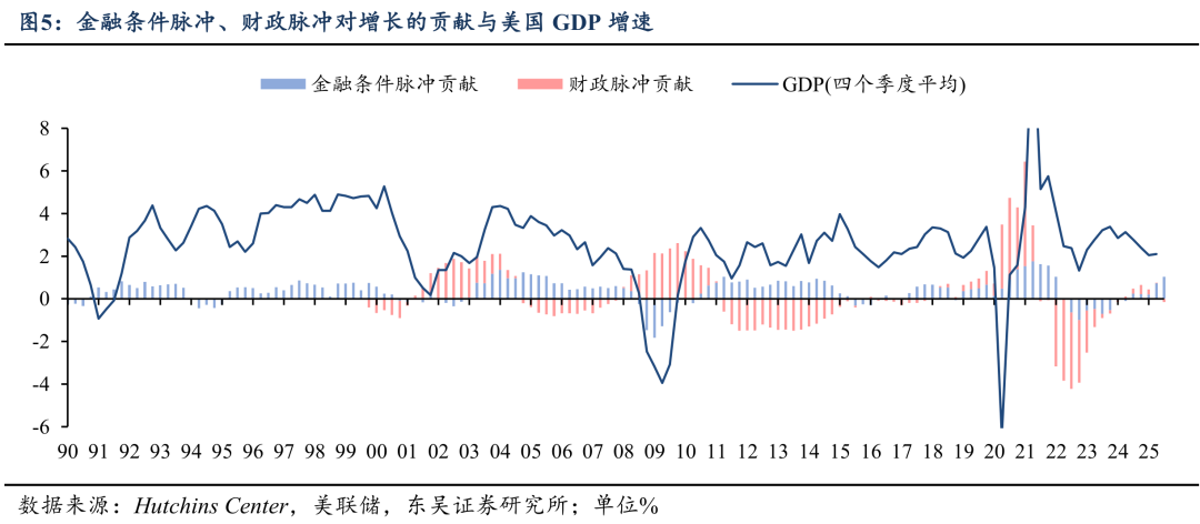 财政政策方面,Hutchins Center编制的财政脉冲(Fiscal Impact Measure, FIM)在最新的25Q2录得0.02%(四个季度平均,即财政政策给美国经济带来0.02%的正面拉动),并预测到26Q4将给美国GDP带来0.43%的正面拉动。若特朗普出台更宽松的财政政策,则我们预期财政政策给美国经济将带来更大拉动。