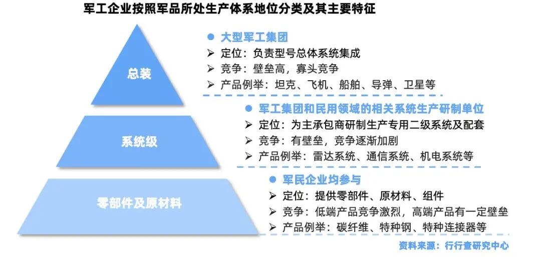 主要涵盖整机制造与系统集成,涉及军机、导弹、卫星、舰船、坦克等核心装备。