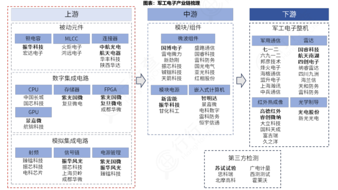 本文重点拆解军工电子产业链核心赛道:核心元器件、军用雷达、军工通信、整机和系统等环节。