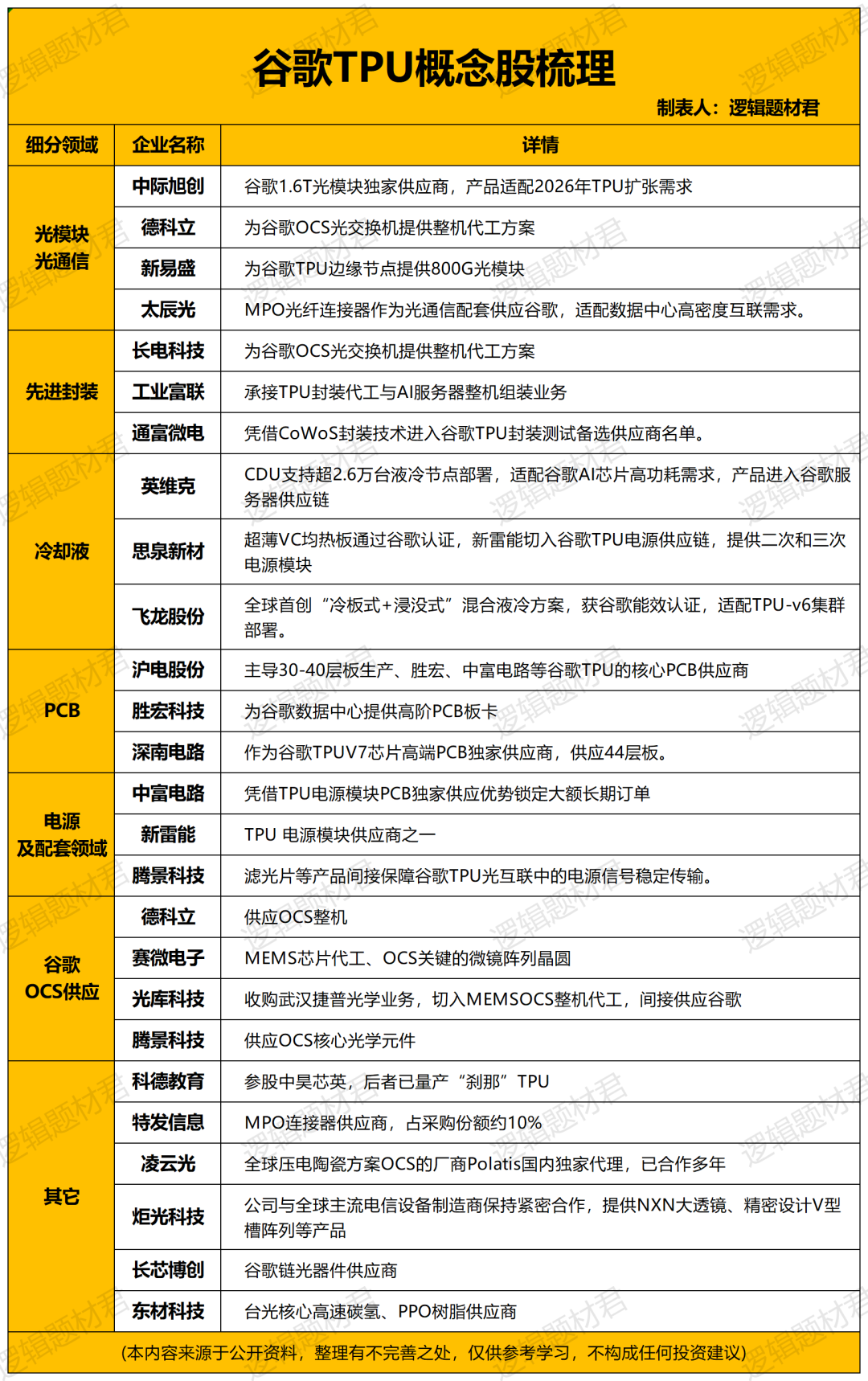 题材君接下来帮大家梳理一下谷歌TPU芯片相关概念股,并筛选其中最核心8家企业,以便大家供大家研究参考,以便后期跟踪