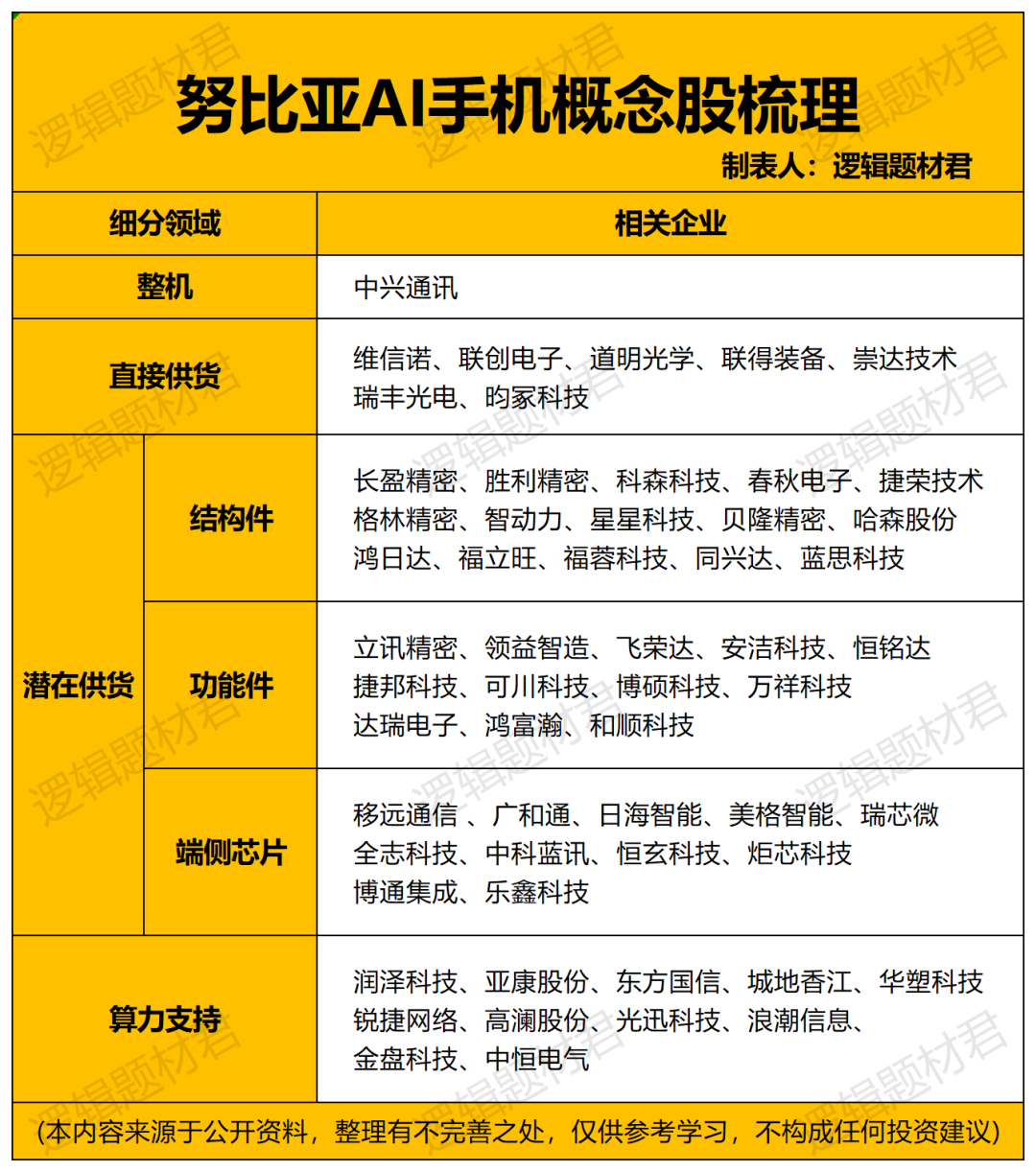 题材君接下来帮大家梳理一下努比亚AI手机相关概念股,并筛选其中最核心8家企业,以便大家供大家研究参考,以便后期跟踪