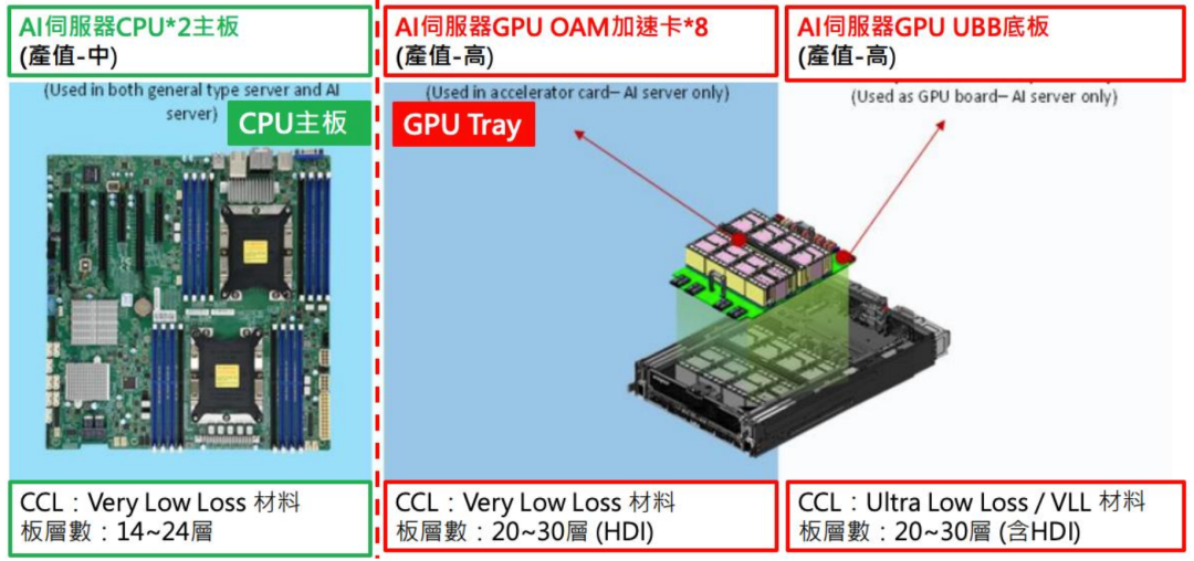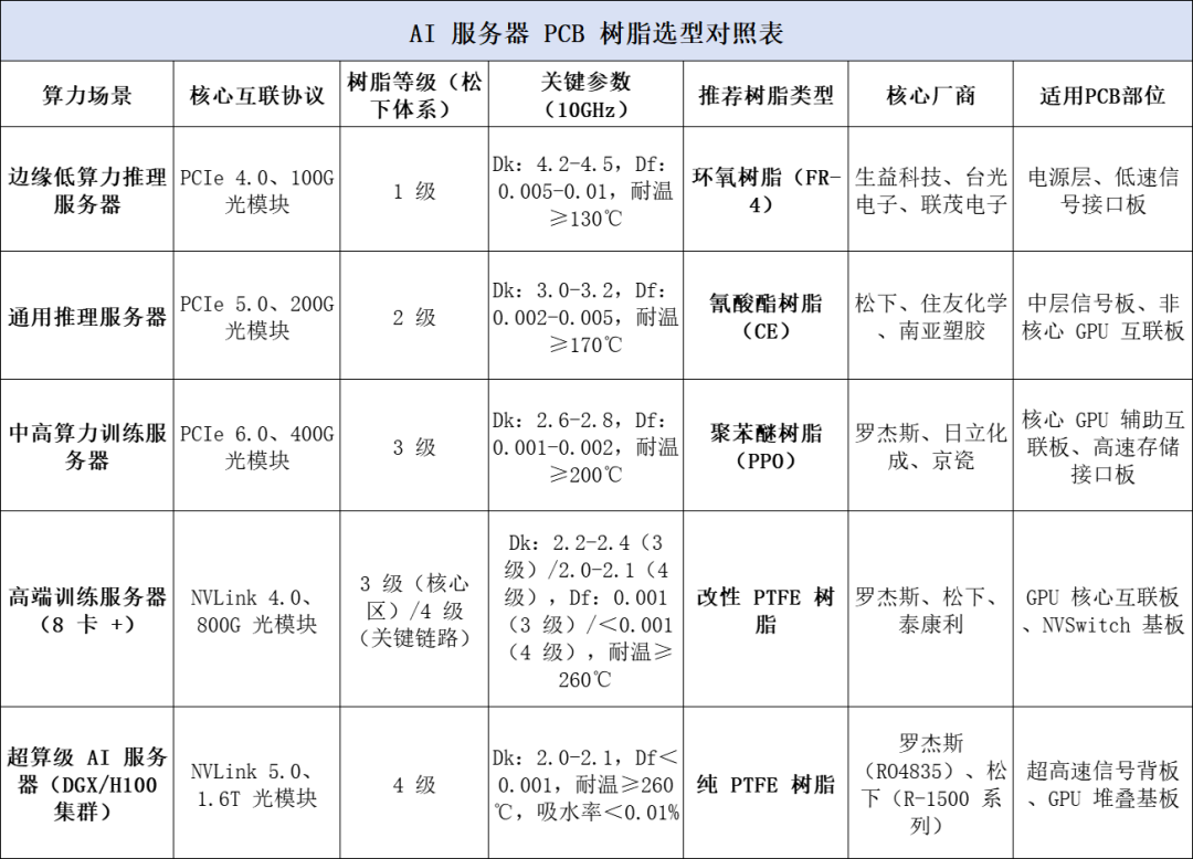 AI服务器需支撑高算力、高速互联、高功耗的场景(如多 GPU集群训练、千亿参数大模型推理),对 PCB/CCL提出远超普通服务器的要求: