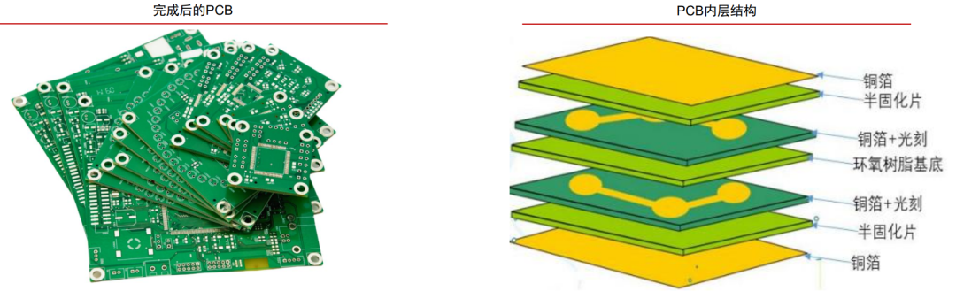 从组成来看,覆铜板由电解铜箔和粘结片构成,而粘结片里有树脂、玻璃纤维布等成分,所以生产覆铜板的三大核心原材料就是电解铜箔、树脂和玻璃纤维布。
