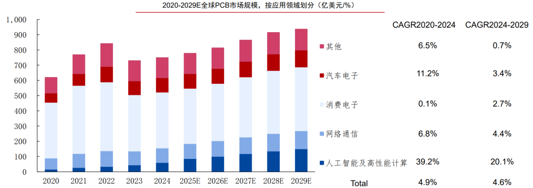 全球PCB市场在人工智能及高性能计算领域的市场规模进一步增长,根据沙利文研究数据,2029年将达到150亿美元,2024年至2029年期间的复合年增长率达20.1%。