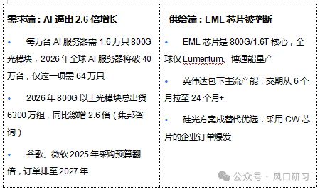 1. 芯片自主破局线:源杰科技(EML量产)、仕佳光子(硅光替代)——EML垄断下,国产替代弹性比模块厂商高3倍。