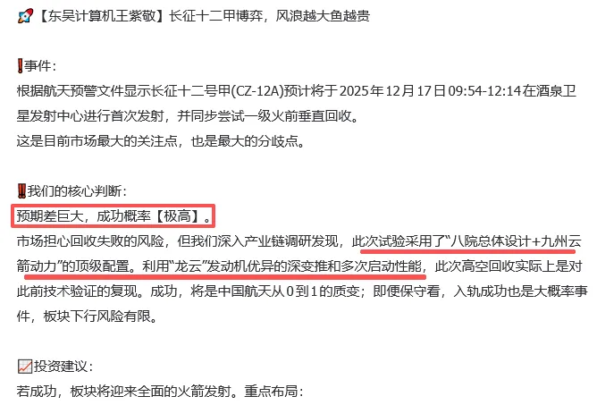 这样,我们不得不为接下来的行情考虑多一步。假如首飞回收成功,最受益是哪些环节?