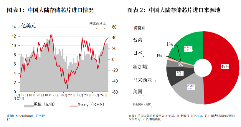 面对美国的限制,中国存储芯片产业并未停滞,而是通过 “短期备货 + 长期自研” 双线并行的方式积极应对。短期来看,中国大幅增加传统存储芯片进口,近一年进口量激增,其中 49% 来自韩国,中国台湾、马来西亚等地区也是重要供应来源,这些非尖端的 “ legacy 芯片” 仍能满足大量科技企业的基础需求。同时,中国企业重新获得英伟达 H20 芯片供应,其搭载的 HBM3 芯片内存带宽(4TB/s)甚至优于英伟达旗舰款 H100(3.4TB/s)和华为旗舰芯片 Ascend 910C(3.2TB/s),一定程度上缓解了高端存储需求压力。