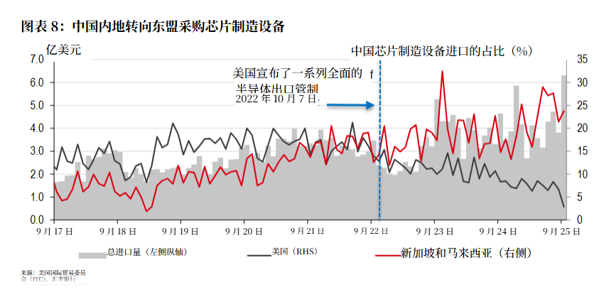 ASEAN(东盟)国家成为最大赢家,新加坡和马来西亚尤其突出。中国芯片设备进口已从美国大幅转向东盟,新加坡凭借稳定的营商环境和产业链基础,吸引美光加码投资:美光 98% 的 NAND 闪存芯片在新加坡生产,并于 2025 年 1 月开工建设 70 亿美元的 HBM 封装工厂,计划 2027 年投产。马来西亚则凭借土地、能源优势和中立的地缘位置,成为中国科技巨头海外 AI 训练基地的首选 —— 由于无法获得最先进的英伟达芯片,中国企业纷纷将 AI 模型训练转移至马来西亚数据中心,同时美光在当地的芯片组装测试基地也持续扩容。