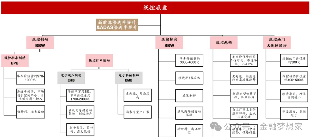 线控制动(BBW)是智能驾驶执行层的核心技术底座,更是实现 L2 + 及以上级别自动驾驶的 “安全基石”—— 其直接承载车辆纵向控制与横向控制的制动执行需求,从L2级的 ACC(自适应巡航)、AEB(自动紧急制动),到L3级的 HWP(高速领航)、TJP(交通拥堵领航),(公众号:金融梦想家)所有高阶智驾功能的落地都依赖线控制动系统的精准响应与安全冗余能力,是连接智驾决策与车辆执行的关键枢纽。