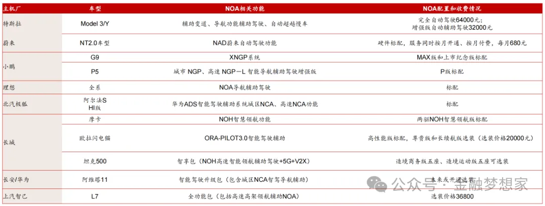各车企开通NOA功能的情况: