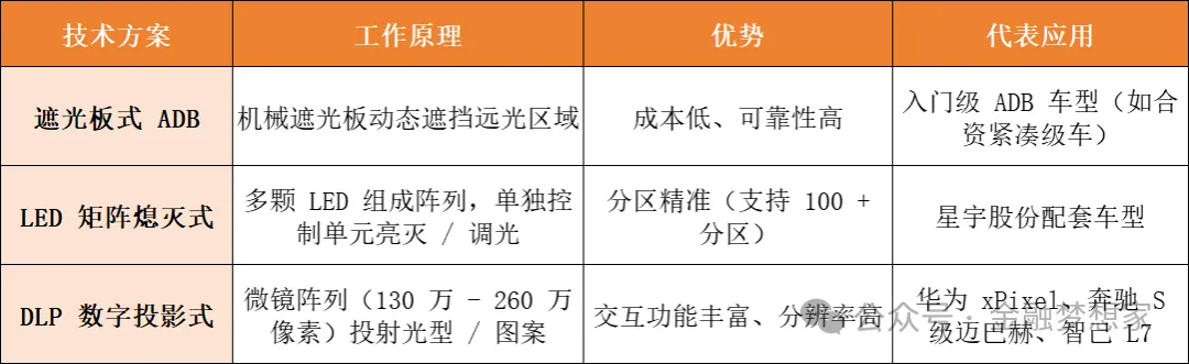 ADB(Adaptive Driving Beam,自适应远光系统)是在AFS(Adaptive Front-Lighting System,自适应前照灯系统)基础上升级的智能照明技术,核心定位是 “动态安全照明 + 多场景智能交互” 的双重载体。