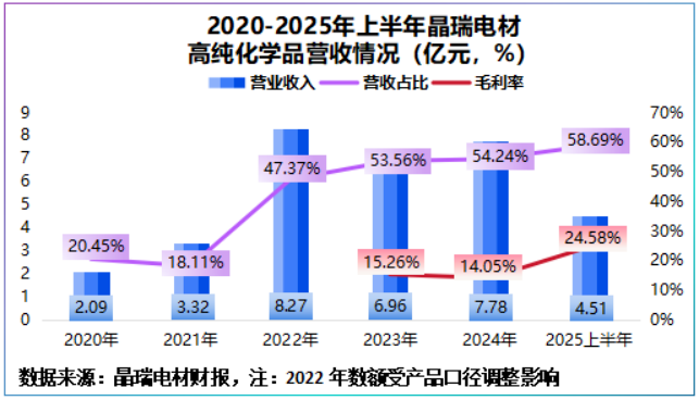 另一边,湖北晶瑞也因为产能释放,2025 年上半年实现净利润 0.24 亿元,毛利率冲到 25.02%,比 2024 年暴涨 20 个百分点。