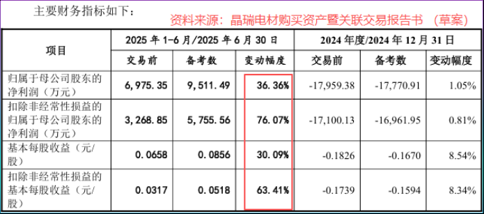根据收购草案测算,要是以晶瑞电材 2025 年上半年的财务数据为基础,交易完成后,公司归母净利润可能会比重组前增长 36.36%。