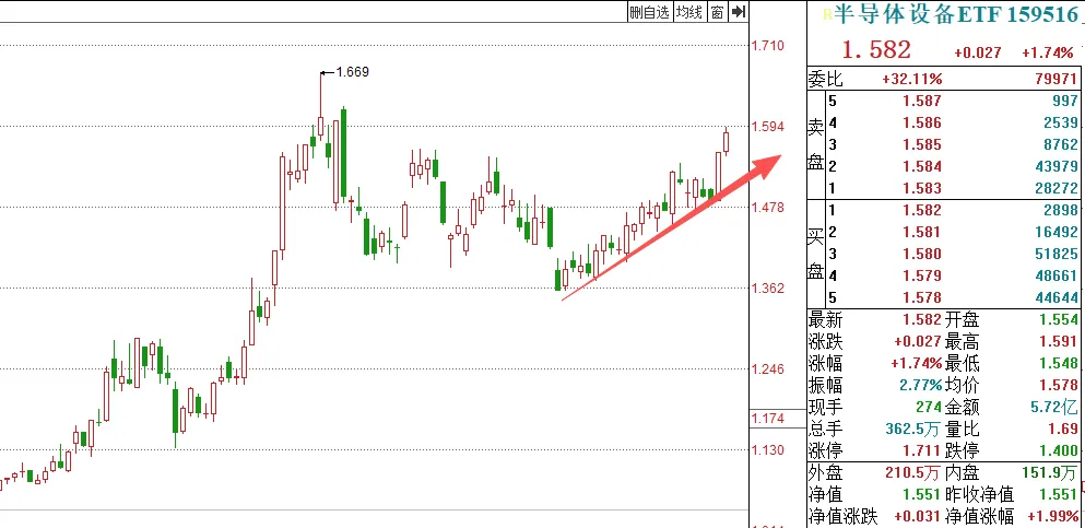 半导体设备ETF,确立方向选择后,向上斜率加速了。