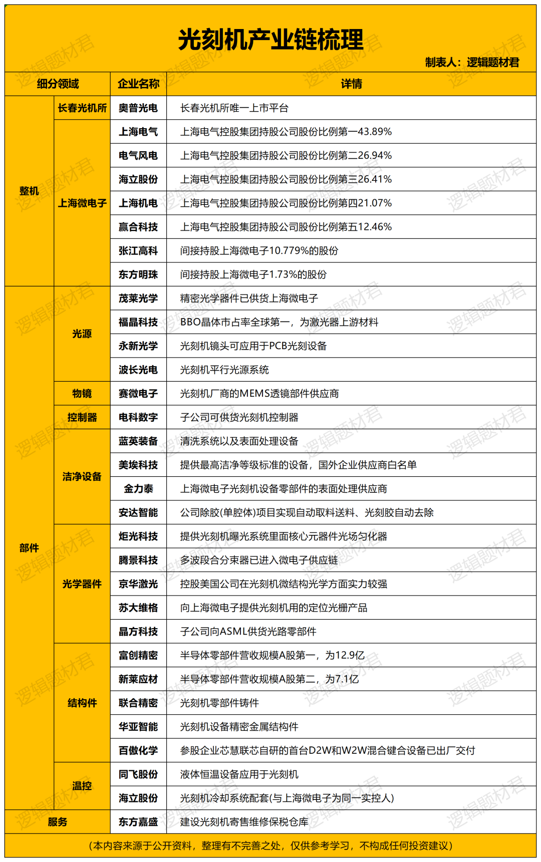 接下来,题材君将从光刻机业务布局和核心潜力亮点两个维度,为大家梳理10家具备技术壁垒与增长弹性的核心标的。