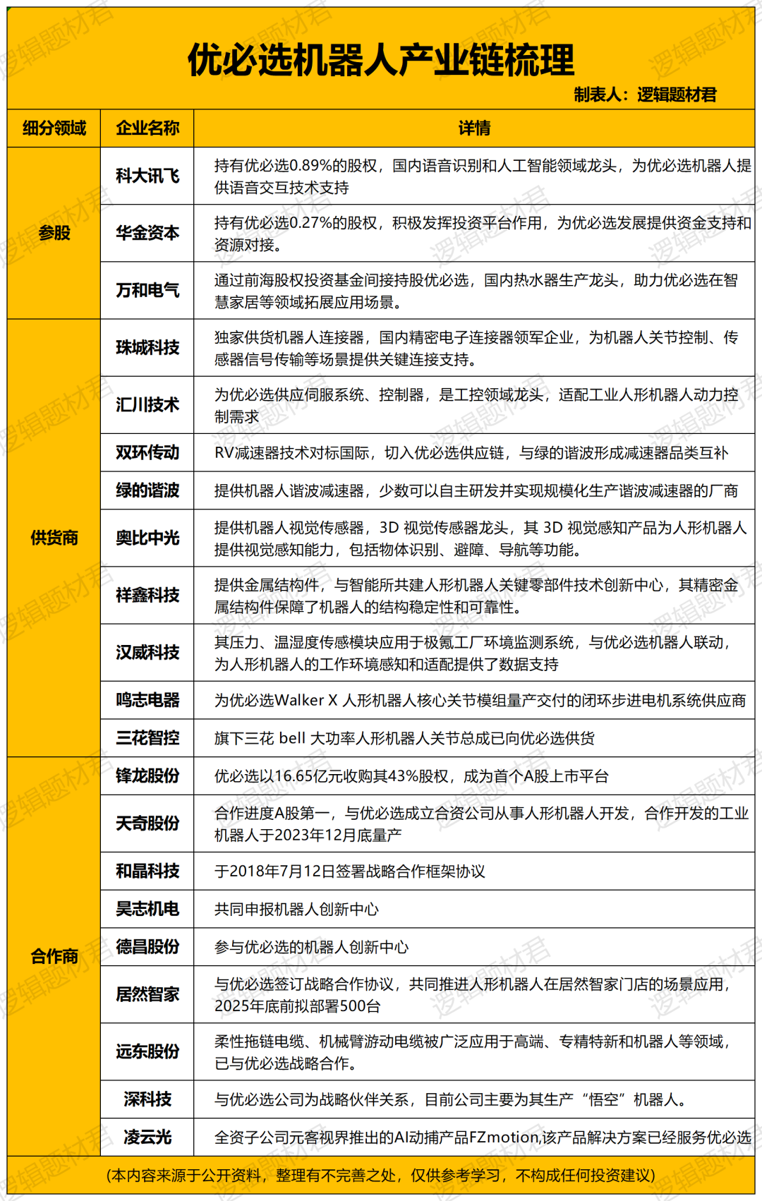优必选机器人:优必选以16.65亿元收购其43%股权,成为控股股东,是优必选首个A股上市附属公司,承接Walker S2量产的精密制造与供应链保障。