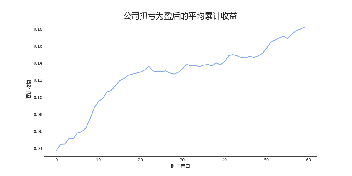 根据历史数据回测显示,扭亏为盈属于正向信号,意味着公司基本面向好,未来一段时间回报可期。下图展示近两年发生扭亏为盈的公司未来60个交易日的收益表现。