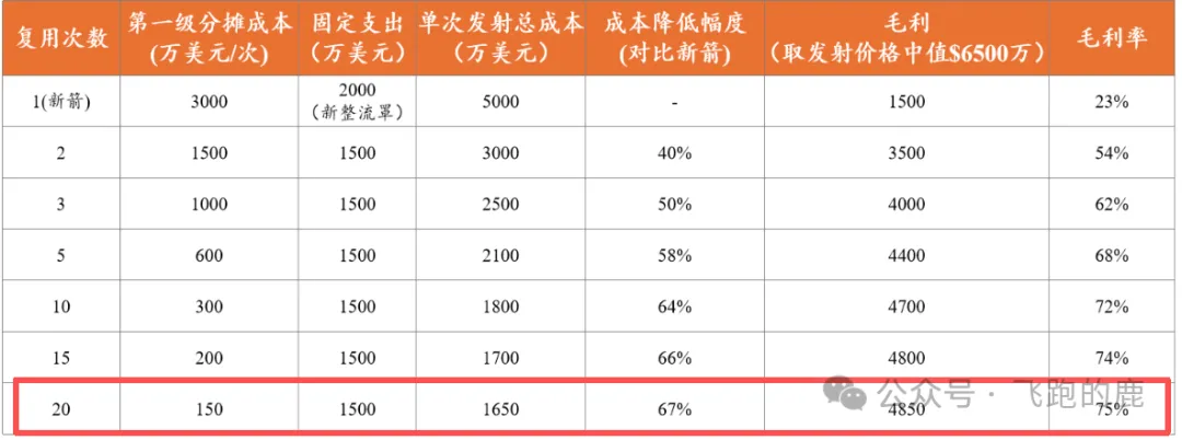 核心规律是火箭复用次数越多,成本摊薄效应越强,盈利空间越显著。