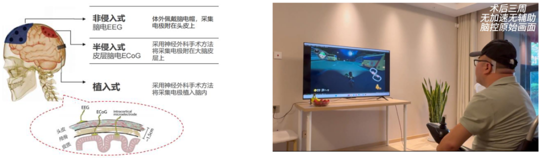 图:脑机接口连接大脑的不同方式 图:我国截肢患者用意念玩游戏