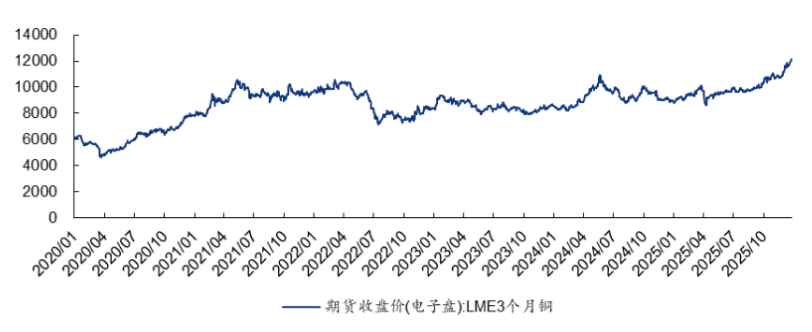 新冠疫情后的全球货币宽松、以“碳中和” 为核心的绿色转型与以人工智能为代表的科技革命,三大趋势叠加推动铜市场进入新一轮结构性牛市。2020 年以来,伦铜均价已跃升至 8658 美元 / 吨,较上一阶段中枢提升 44%;更关键的是,2022 年铜价调整过程中展现出极强韧性,并未回落至 6000 美元 / 吨的前中枢水平,反而快速反弹并屡创新高。这一现象标志着铜市场的驱动逻辑已发生根本性转变 —— 从 “中国需求” 单一引擎,转向 “全球电气化 + 智能化” 的多元驱动模式,一个新的、更高的价格中枢正在加速形成。