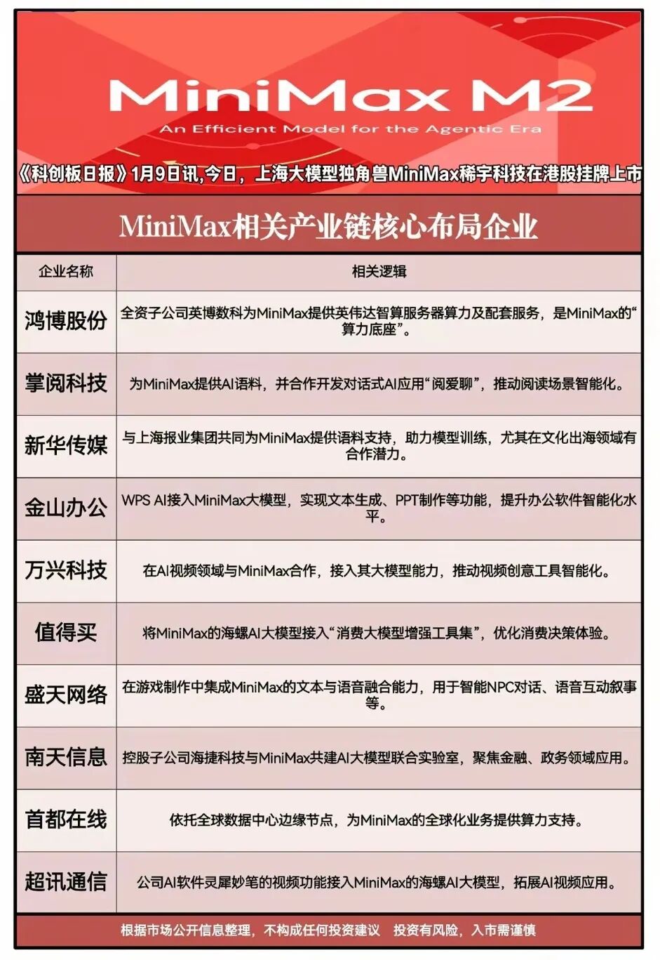 1月9日上海大模型独角兽MiniMax稀宇科技正式登陆港股,其M2大模型正加速商业化落地。