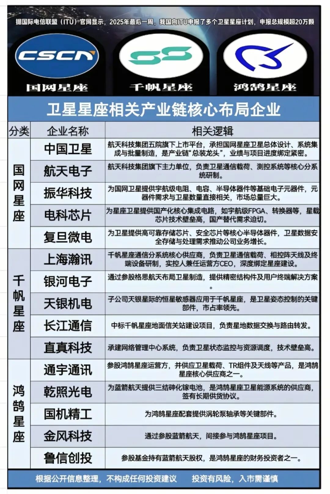 周末消息,我国向国际电信联盟申报了多个卫星星座计划,总规模超20万颗,其中超19万颗来自无线电创新院(中国电科等7家单位共建),标志着我国商业航天正式进入“万星时代”。