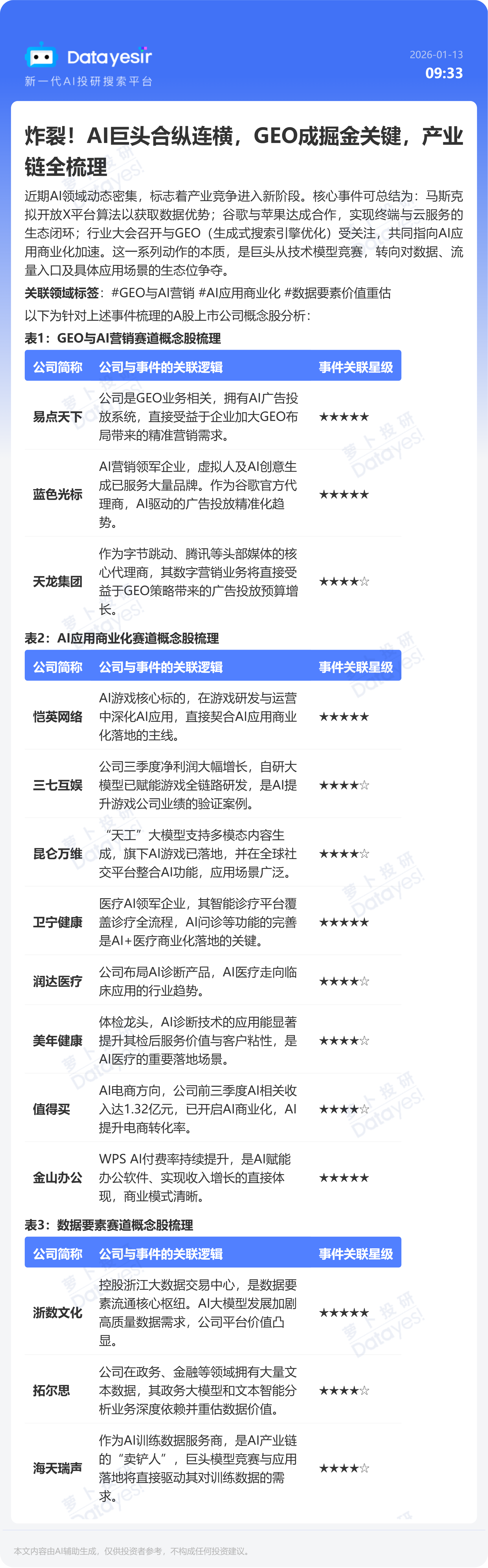 炸裂!Al巨头合纵连横,GEO成掘金关键,产业链全梳理