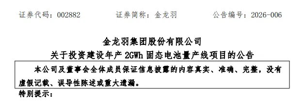 越来越多的固态进展被曝光,昨晚金龙羽公告拟投资建设年产2GWh固态电池量产线项目,项目总投资约12亿元。
