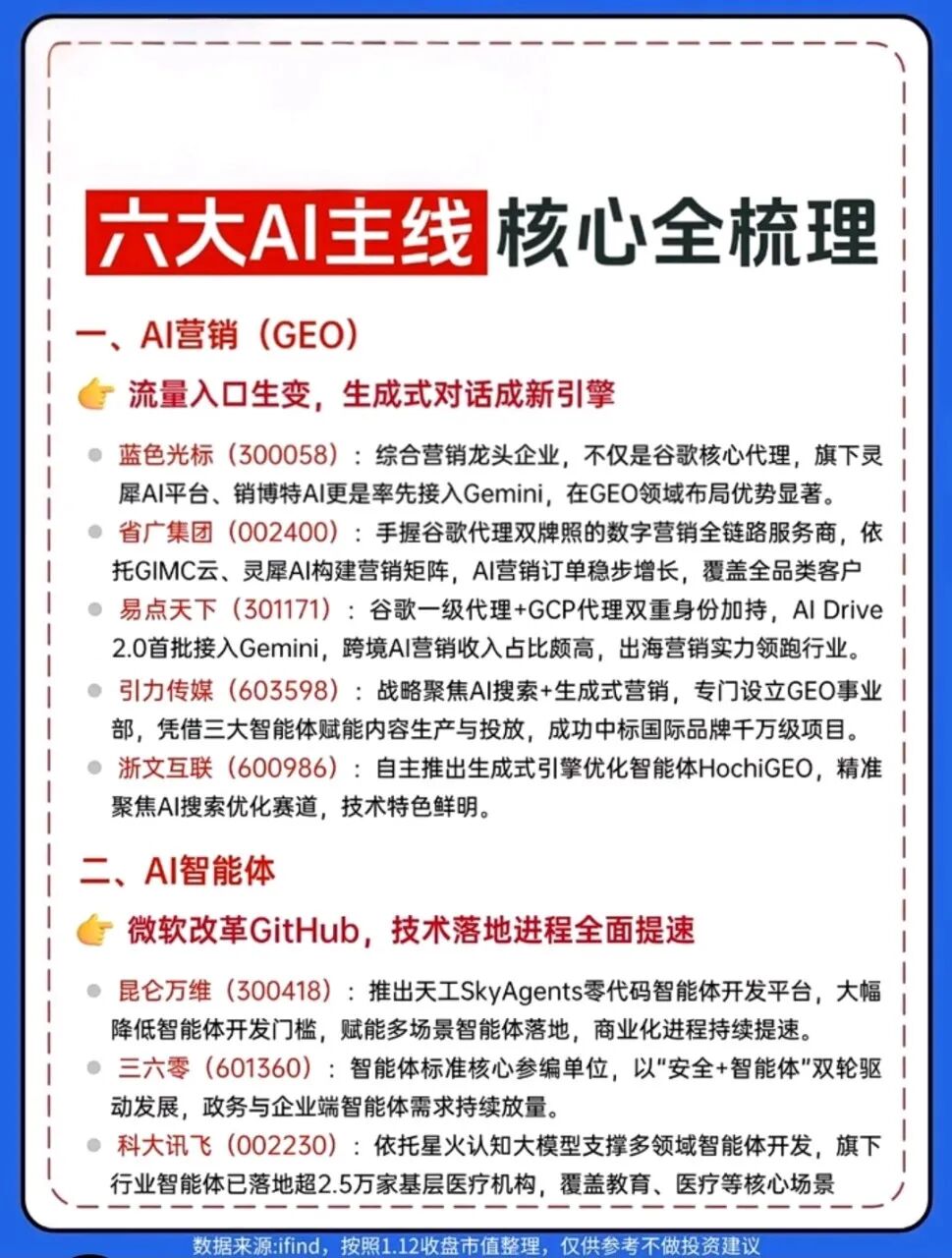本文分享内容:AI题材6大主线+AI软件10大龙头+AI硬件7大概念+算力硬件6大方向+创新药10大龙头+电网设备核心标的!