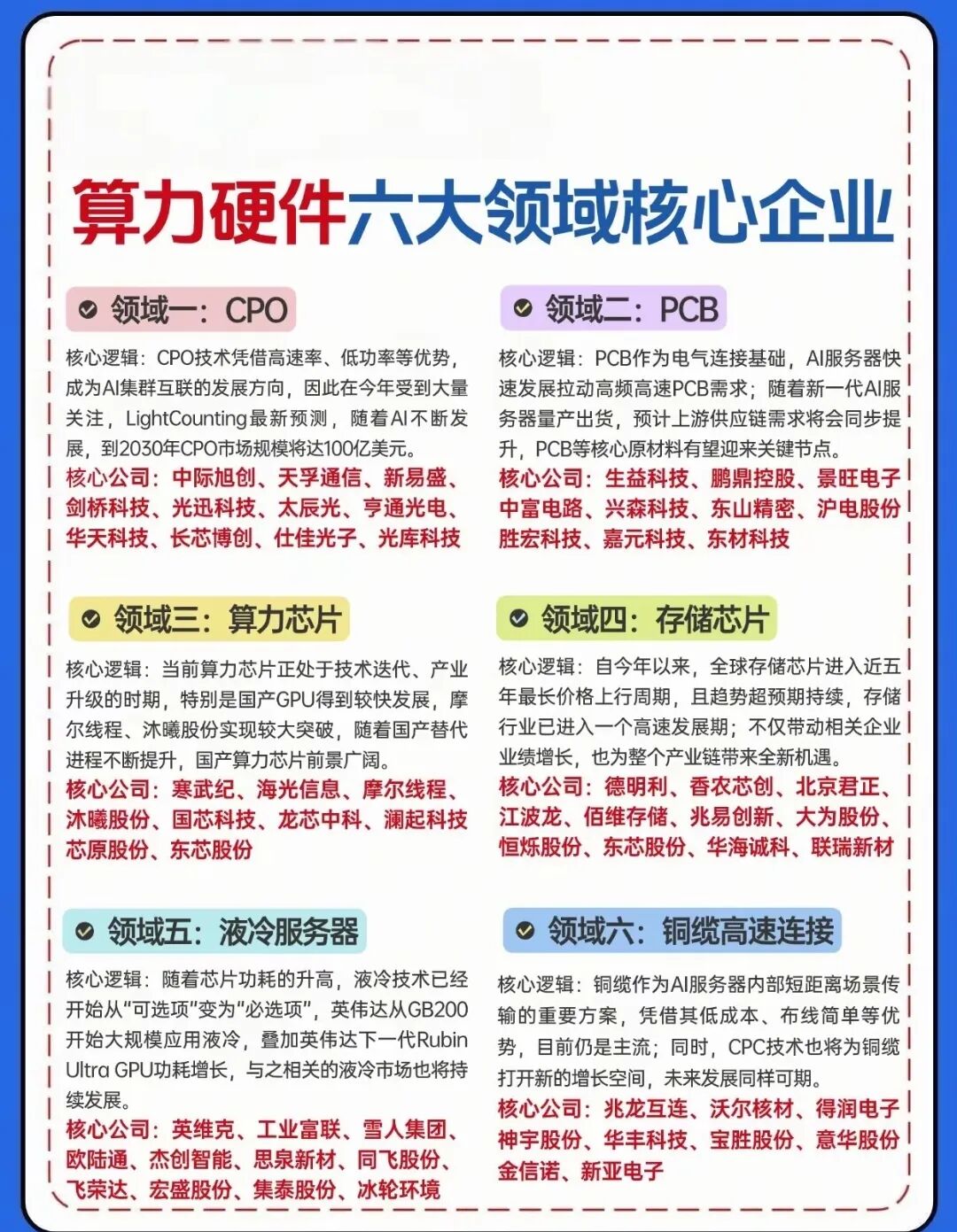 随着AI大模型与端侧硬件爆发,算力需求指数级增长,CPO、PCB、算力芯片、存储芯片、液冷服务器、铜缆高速连接覆盖AI算力基建全链条。相关概念龙头值得关注!