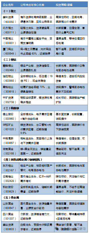 从涵盖范围来看,主要包括三大类:一是战略金属(稀土、锂、钴、锑、锗、镓等),二是贵金属(黄金、白银等),三是其他稀缺矿产(钨、锡、锆等)。