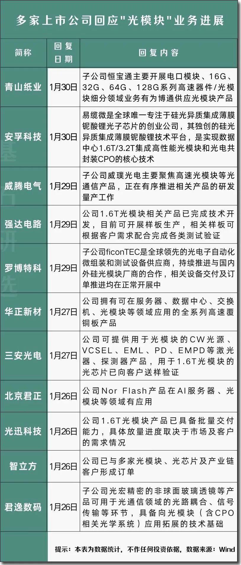 青山纸业子公司恒宝通与博通等国际厂商的紧密合作,也反映出国内供应链在全球光模块产业中扮演着不可或缺的角色。其产品广泛服务于数据中心、智算中心等新基建领域。