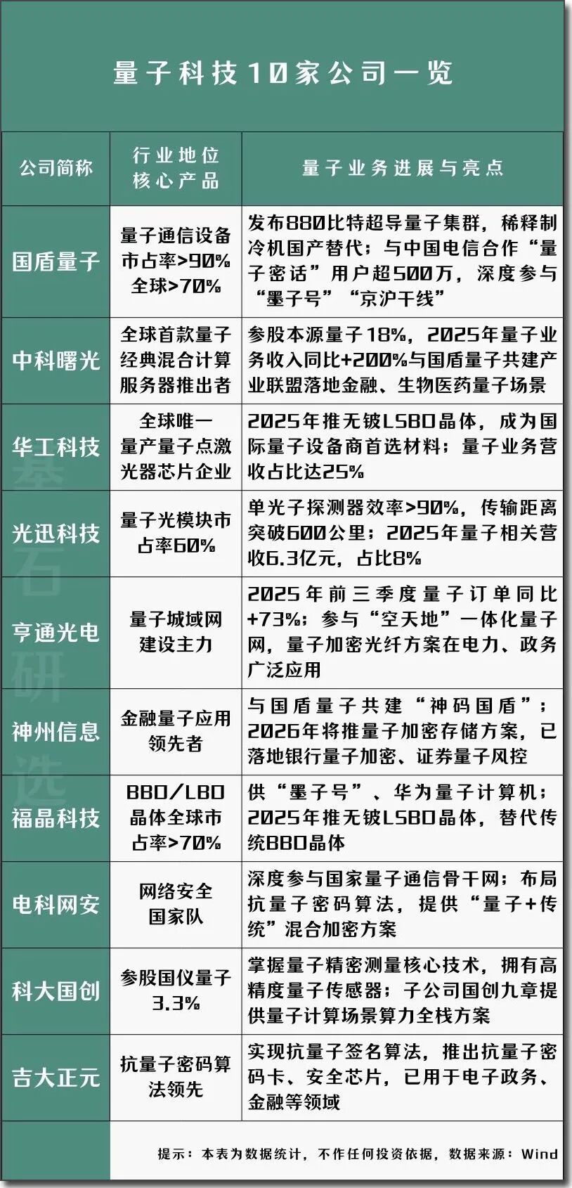 华工科技是全球唯一量产量子点激光器芯片的企业;光迅科技的量子光模块市占率达60%,单光子探测器传输距离突破600公里。